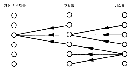 구성들이 수행해야 할 기능들의 수가 많아지고 구성들을 위한 명세 사항들이 축적될수록 우리는 모든 세부사항에 있어서 하나의 특수한 구성으로 수렴하는 것처럼 보였다. 그림 1 - 7 의 모든 제약들이 동시에 적용되었을 때 어떤 것이 진실인지는 모르지만, 현재의 단계에서는 분명히 그 일이 이루어지지는 않았다. 시스템들은 유연성과 엄청난 다양성을 다룰 수 있다. 그림 14 가 도식적으로 예시하는 바와 같이, 많은 다른 기호 시스템들이 가능하고, 다른 많은 구성들과 많은 기술들 역시 가능하다. 단지 다양성이 있는 것이 아니라 극단적인 다양성이 존재한다. 거의 모든 종류의 재료들이 어떤 종류의 기술에 의해서 일반계산을 위한 것으로 만들어질 수 있다 —— 자기, 정전기, 유체, 생물, 기계 (고무줄로 연결된 블록세계 조차도). 더 나아가 이들 수준들 사이의 관계는 일 대 일 대응이 아니다. 많은 다른 구성들이 주어진 하나의 기호 시스템을 실현할 수 있다. 다른 많은 기술들이 주어진 동일한 구성을 실현할 수 있다. 동일한 기술이 많은 다른 구성들은 실현하는 데 사용될 수 있다 (유일한 제약은 정의에 의해, 하나의 주어진 구성은 하나의 특수한 기호 시스템을 실현해야 한다는 것 같다). 다양성이 너무 크기 때문에 우리는 그것의 한계에 대한 어떠한 구조적 특성화도 갖고 있지 않다. 그림 11 로 귀결되는 기호 시스템들의 분석처럼, 모든 특성화는 기본적으로 기능적인 것이다. 그것들이 그러한 기능들은 제공해야 한다는 것을 제외하고는 본질적으로 기계의 성질을 특성화하는 데에 대해 알려진 것은 아무 것도 없다.